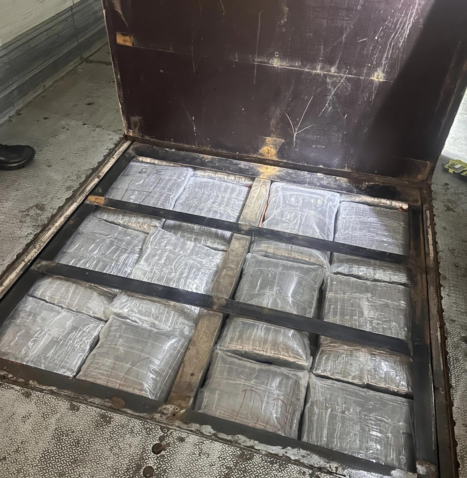 Smuglerne forsøkte å gjemme hasjen i gulvet på en semitrailer.